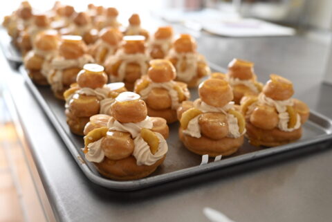 Freeクラスの「キャラメルバナナサントノーレのお菓子教室」続いています。