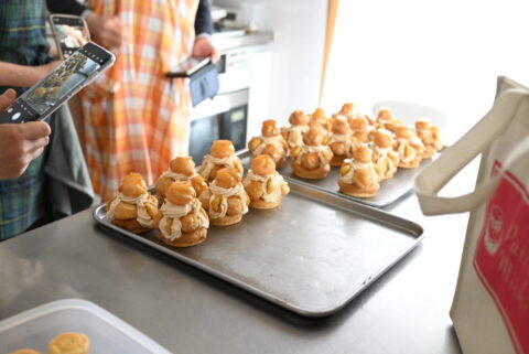 お久しぶりの生徒さんは、ご購入下さった動画レッスンの「シュー生地」作りの動画を見て予習して来ました!って。