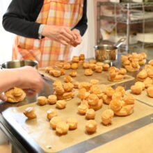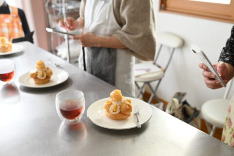 お久しぶりの生徒さんは、ご購入下さった動画レッスンの「シュー生地」作りの動画を見て予習して来ました!って。