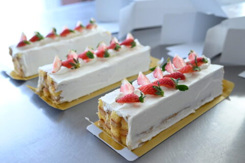 このケーキは、スポンジをカット場面が一番難しく、波場ナイフの使い方をしつこくお伝えするレッスンでした。